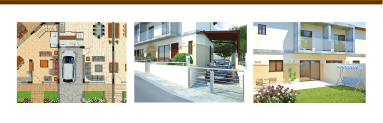 Η κάθε μεζονέτα είναι διώροφη με ευρύχωρους και λειτουργικούς χώρους, δύο και τριών υπνοδωματίων, με μεγάλη τραπεζαρία, κουζίνα, δύο αποχωρητήρια, καλυμμένο χώρο στάθμευσης και κήπους, τόσο μπροστά όσο και στο πίσω μέρος της. |